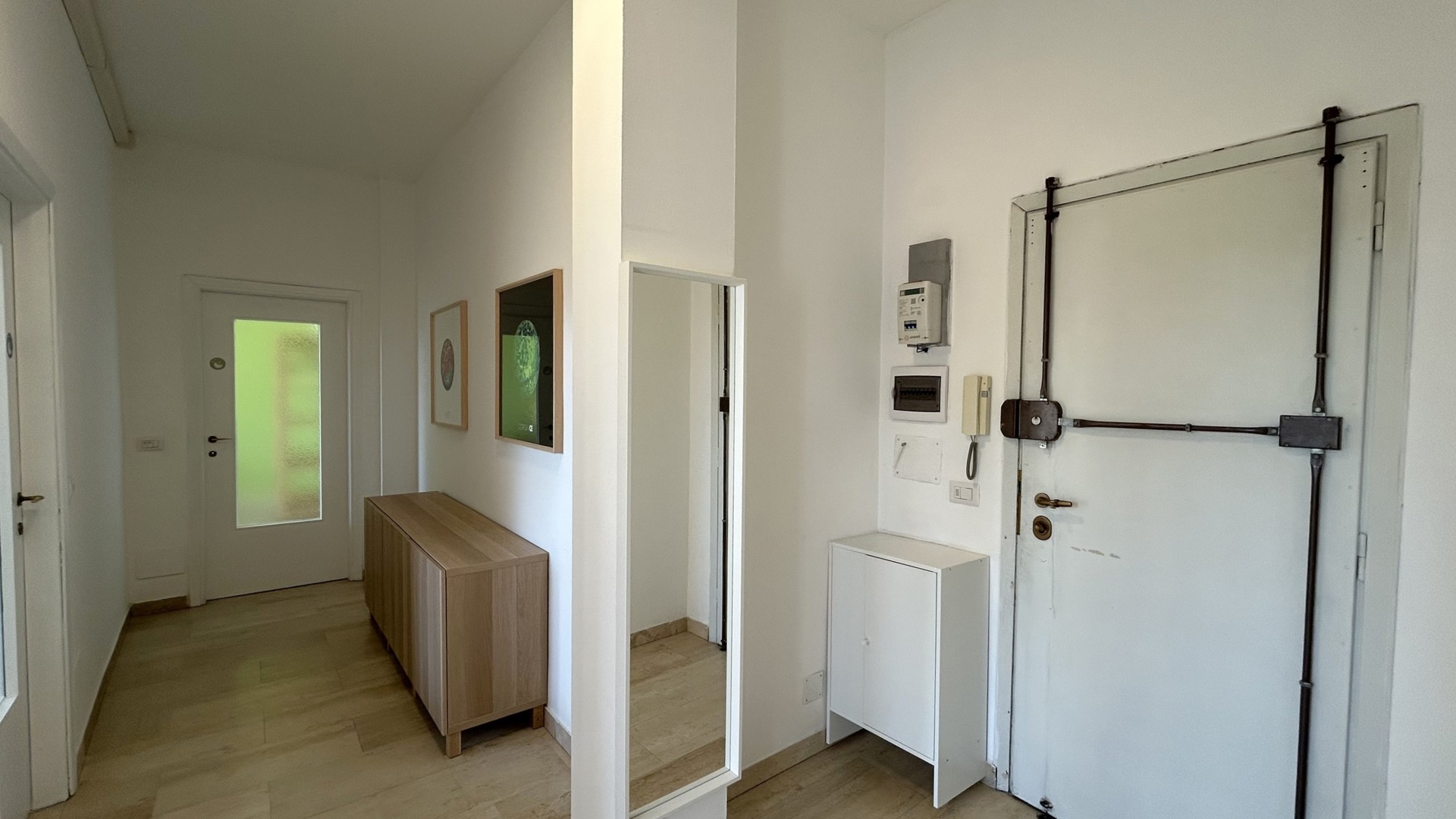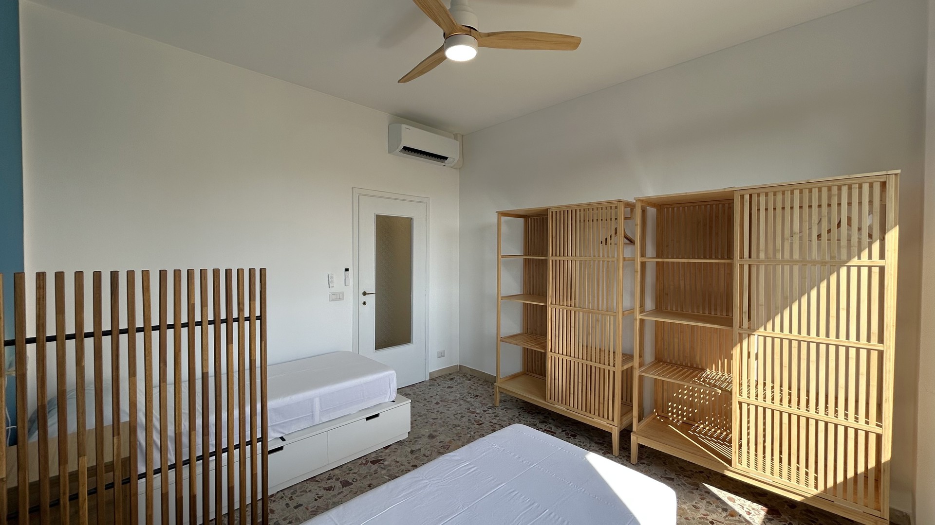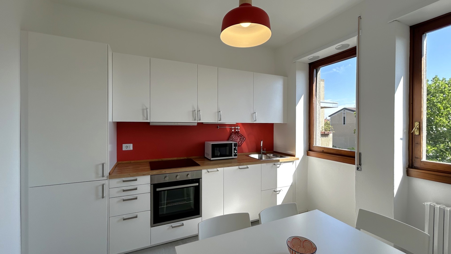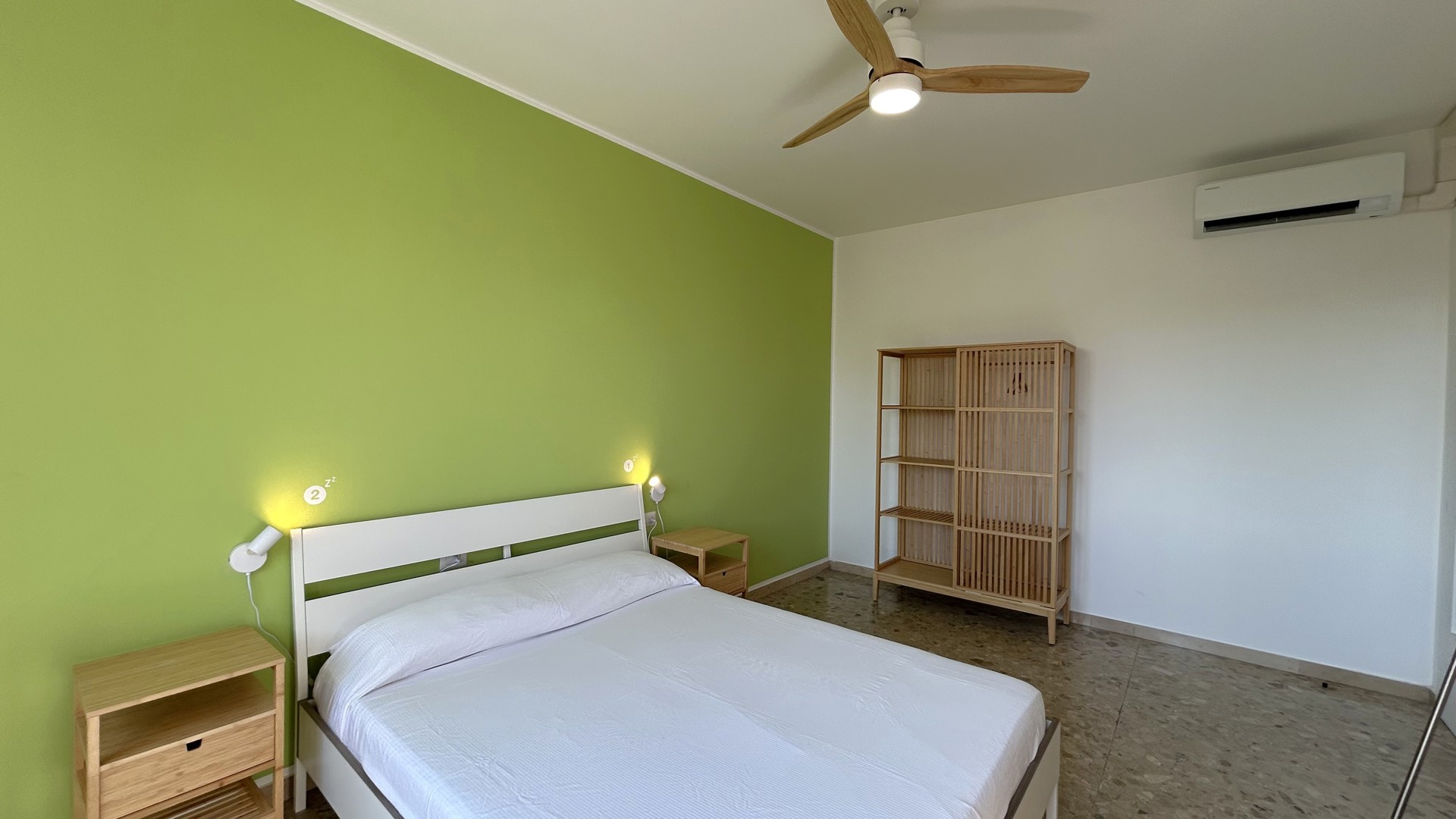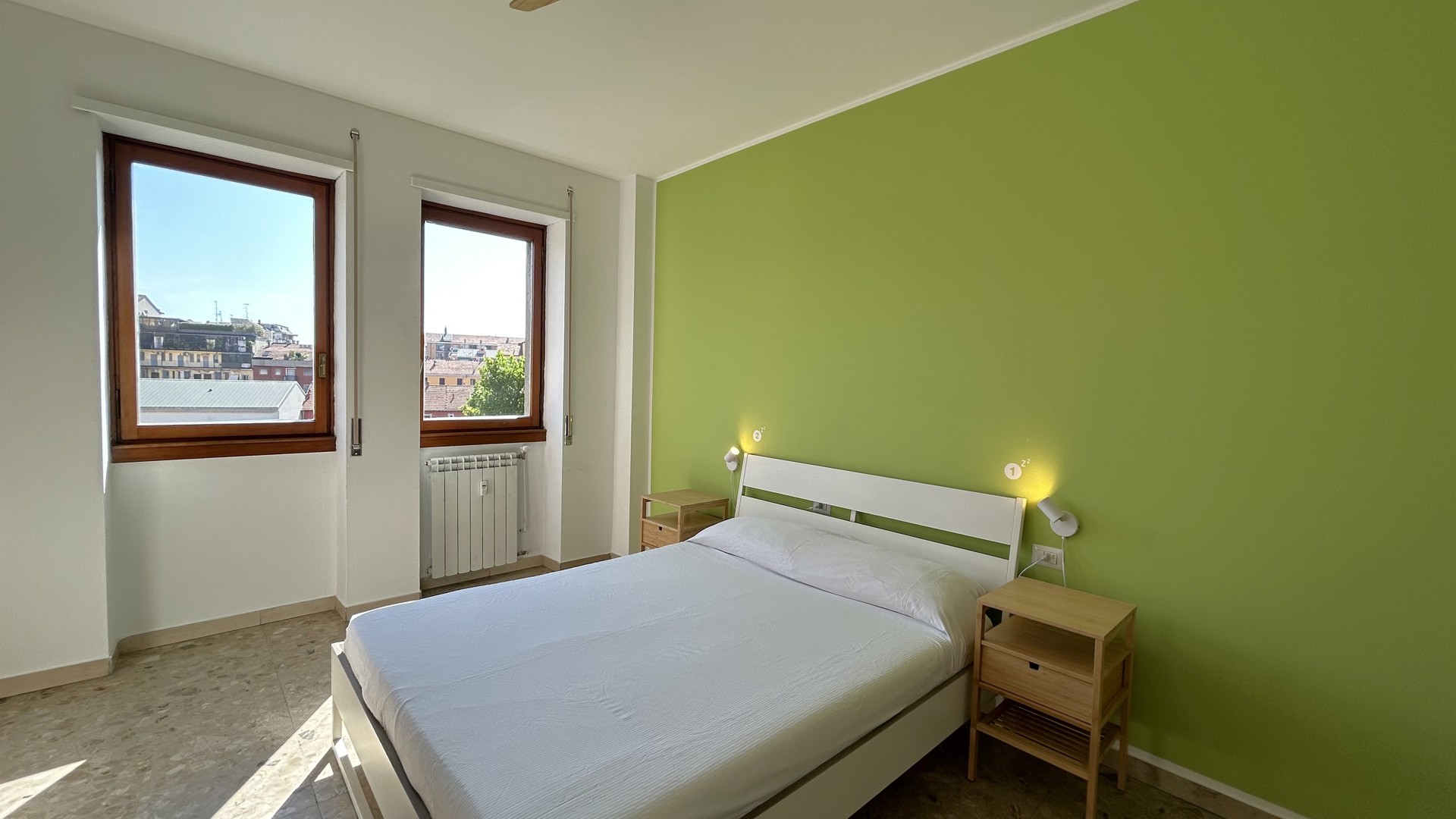 Luminoso e ampio appartamento al quinto piano, composto da ingresso su disimpegno, cucina abitabile completamente attrezzata, due spaziose camere da letto (una con letto matrimoniale e una con due letti singoli) e un moderno bagno con doccia.
