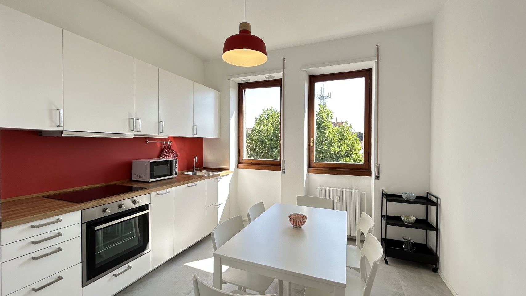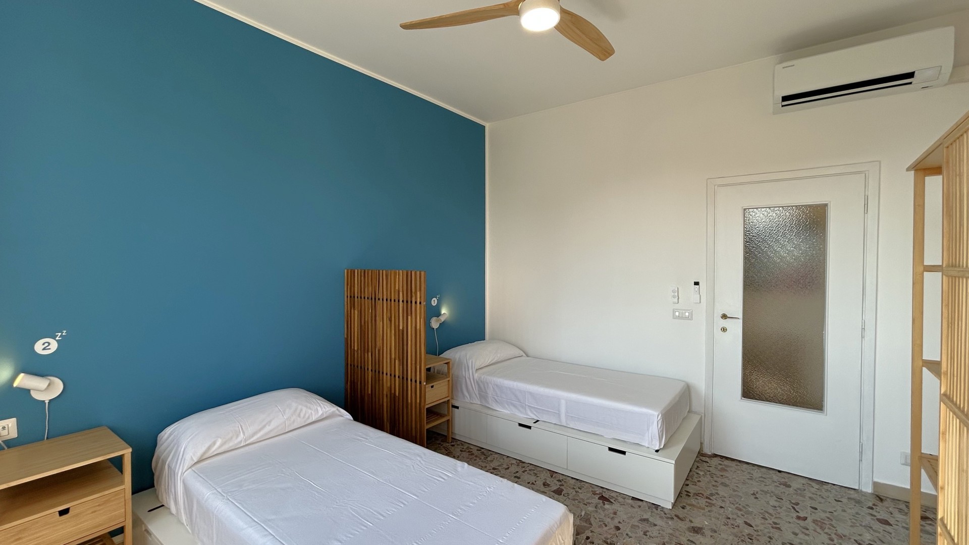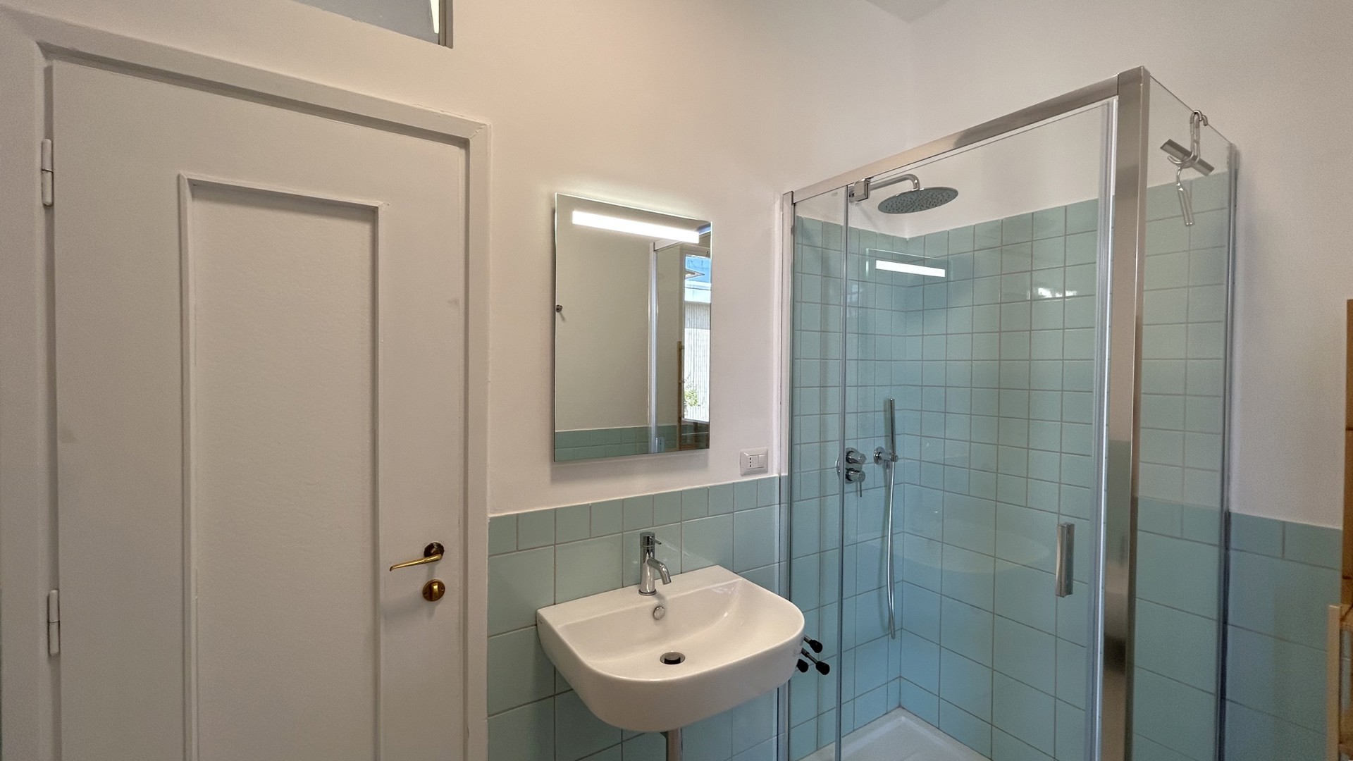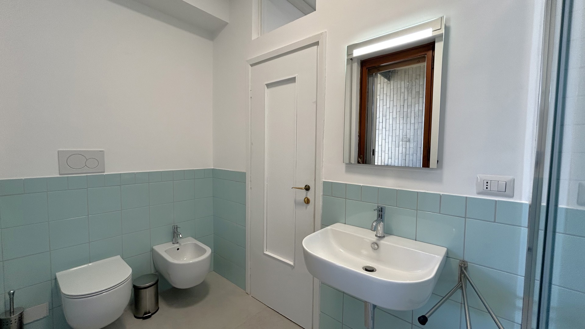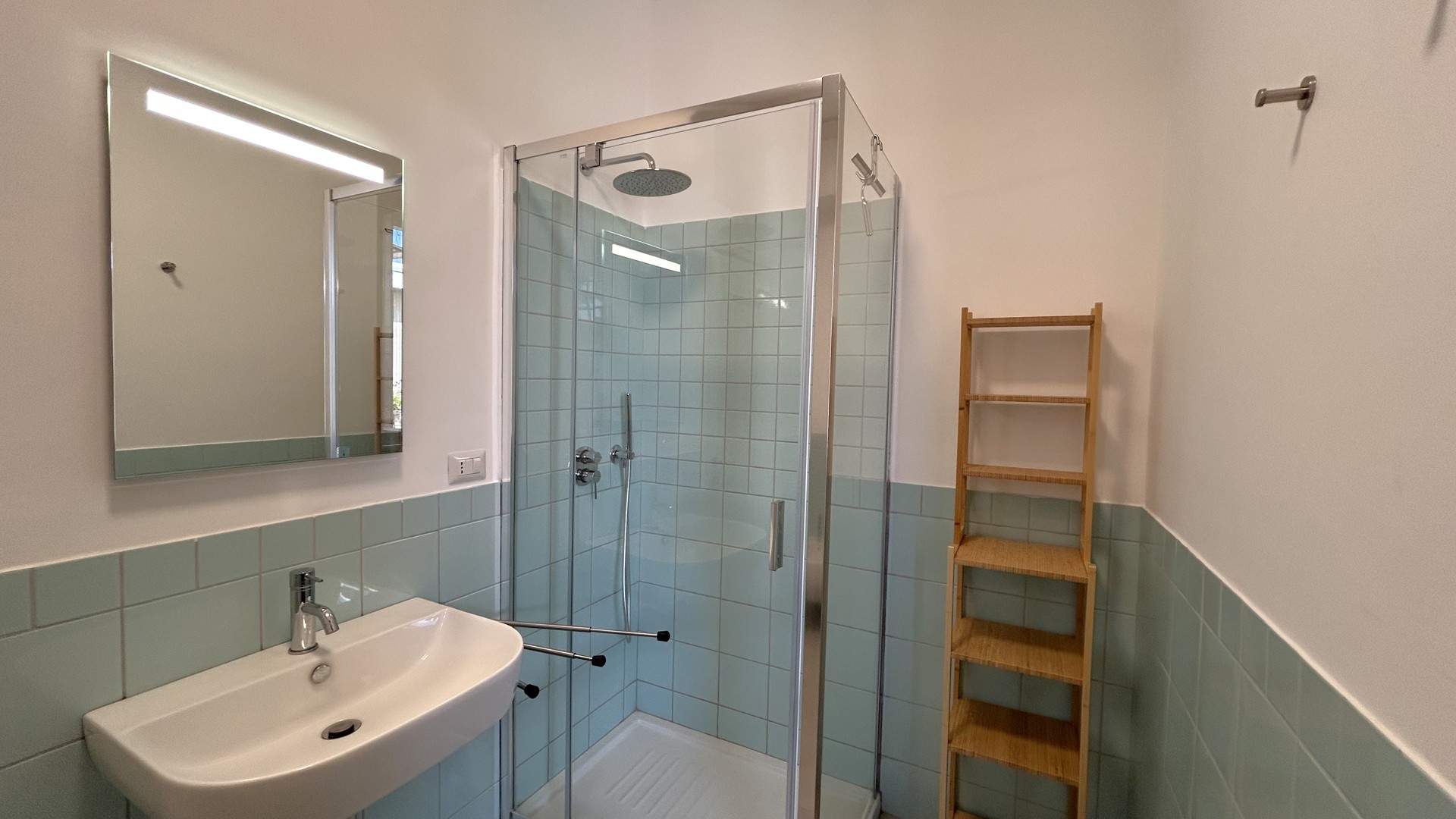 Luminoso e ampio appartamento al quinto piano, composto da ingresso su disimpegno, cucina abitabile completamente attrezzata, due spaziose camere da letto (una con letto matrimoniale e una con due letti singoli) e un moderno bagno con doccia.