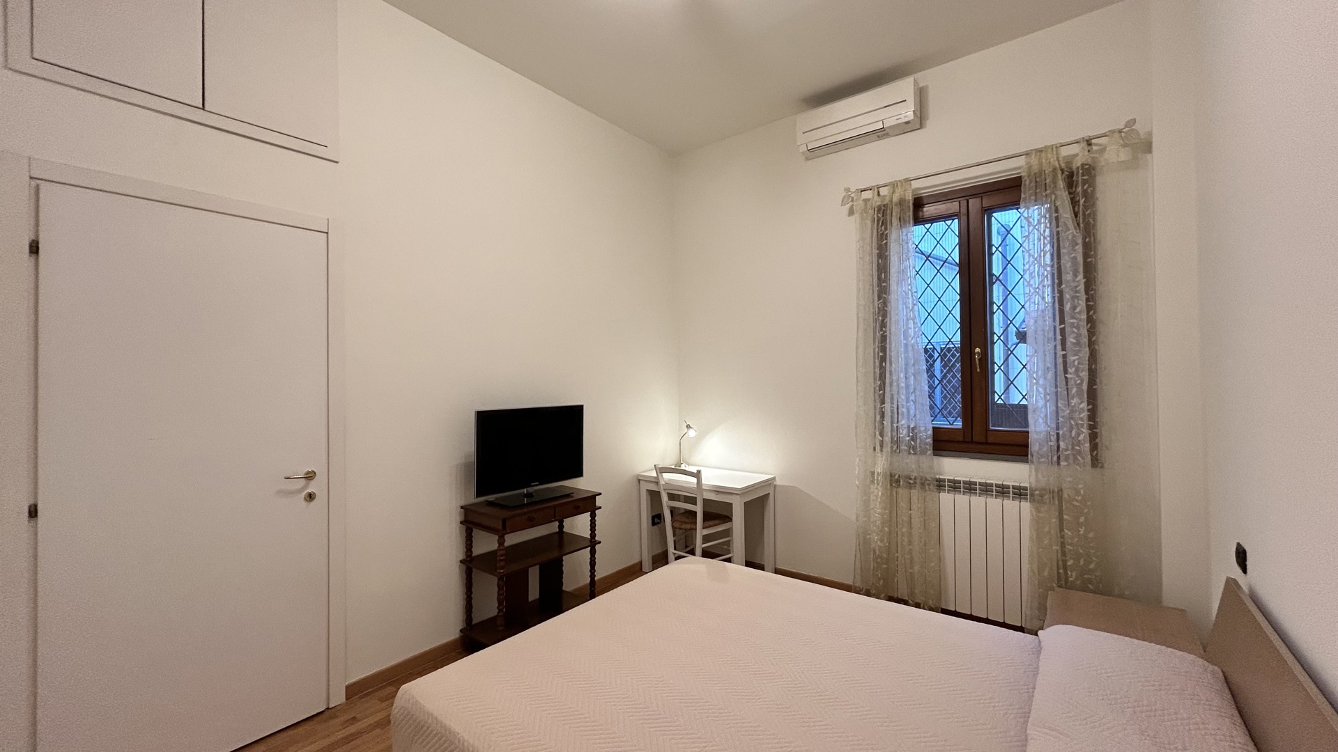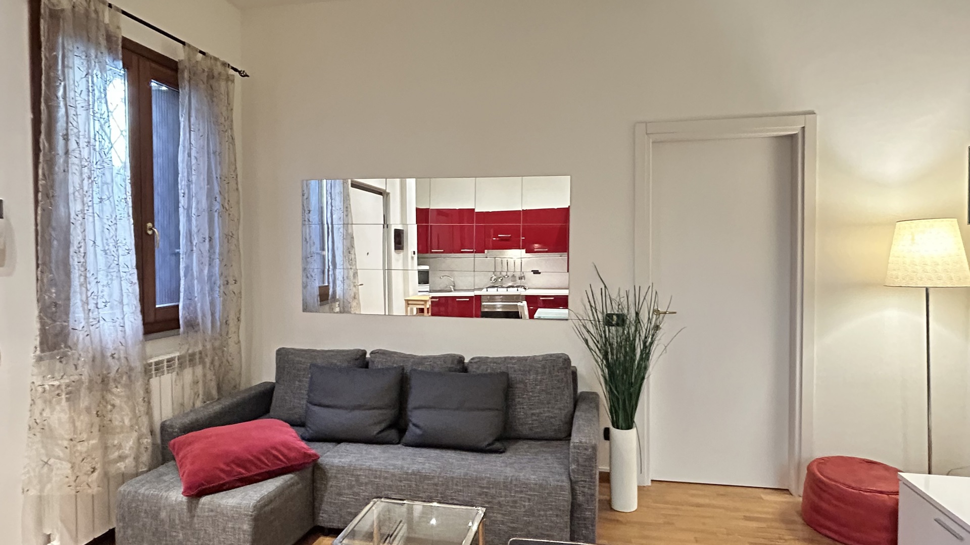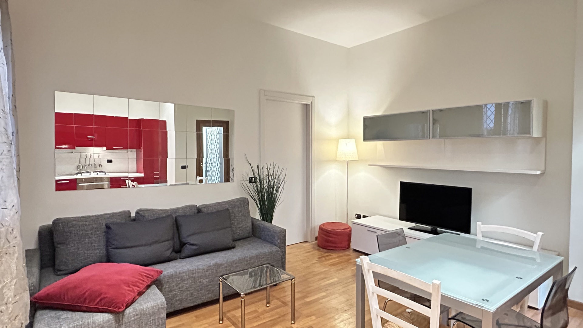 Accogliente bilocale situato al piano terra, all’interno di un tranquillo cortile. La zona giorno si compone di un soggiorno con cucina a vista completamente attrezzata e angolo pranzo. È presente anche una piccola area di servizio esterna. La zona notte dispone di un corridoio con armadiatura, un bagno moderno con doccia e una camera da letto matrimoniale arredata con TV, scrivania e armadio. La posizione è particolarmente comoda: nelle vicinanze si trovano negozi, servizi e fermate dei mezzi pubblici. La metro linea rossa M1 permette di raggiungere il centro città in pochi minuti. L’appartamento unisce funzionalità e comfort, rappresentando la soluzione ideale per soggiorni pratici e piacevoli.