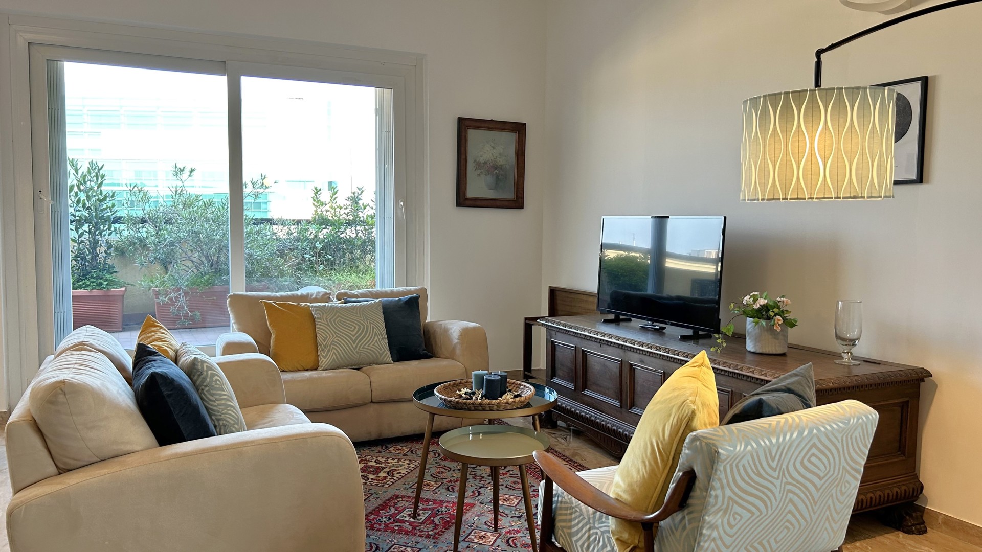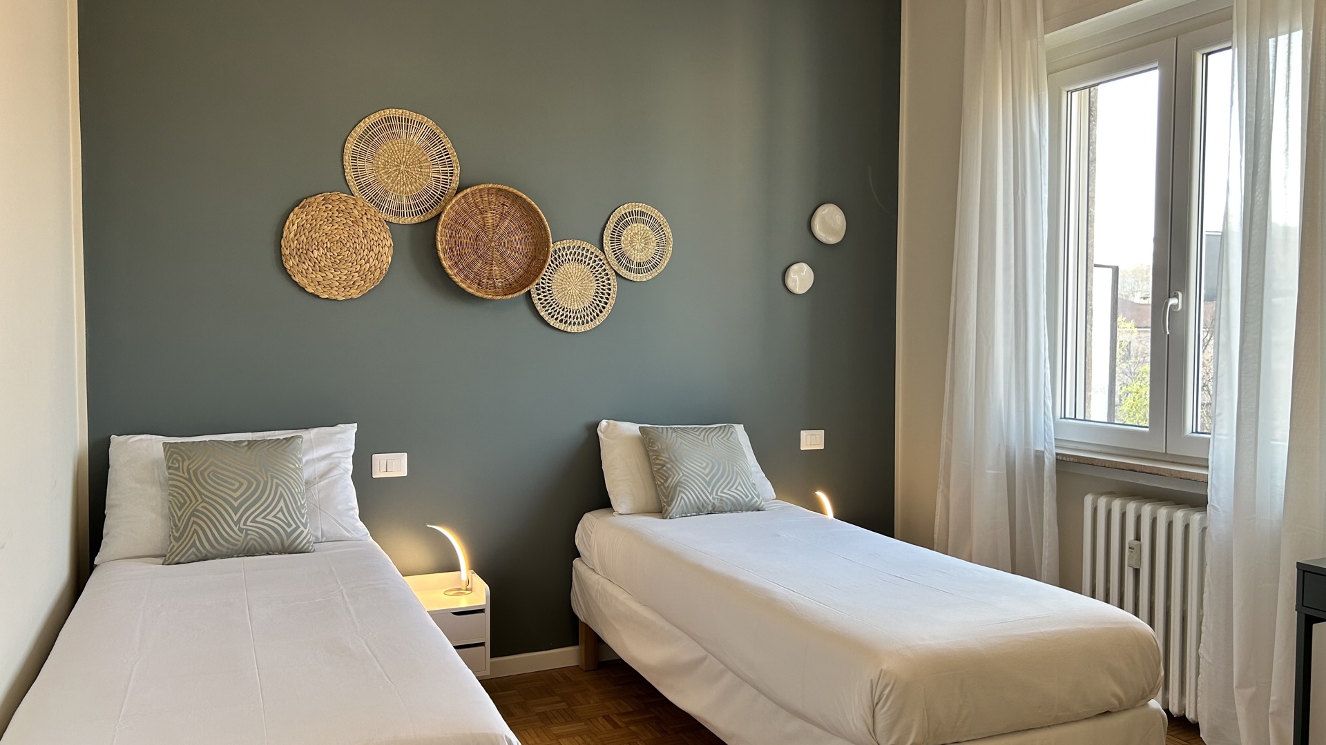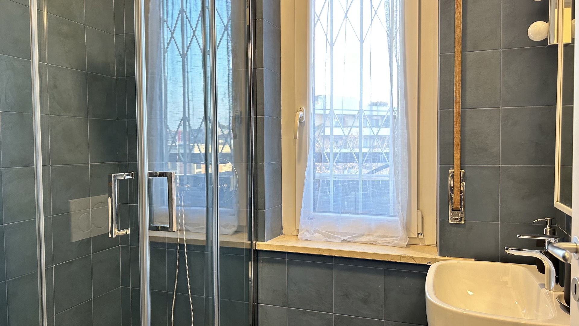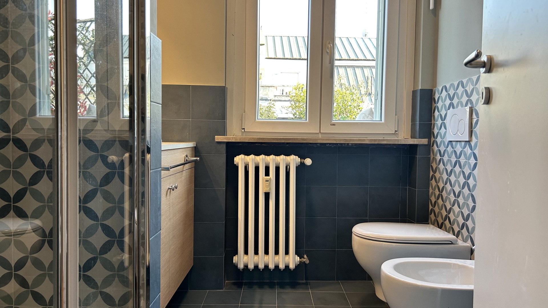 Raffinato trilocale con ampio terrazzo posto al quarto piano di un'elegante palazzo nel quartiere Lambrate di Milano. L'appartamento è composto da un ingresso su ampia zona giorno con salotto e una cucina a vista completamente attrezzata e sala da pranzo, zona lavanderia e bagno con doccia. La zona notte e composta da due camere da letto, una con due letti singoli, una scrivania e armadio a muro, l'altra camera da letto ha un letto matrimoniale con armadio a muro ed accesso sul terrazzo; completa la zona notte un moderno bagno con doccia. L'appartamento è stato completamente ristrutturato e ha un magnifico terrazzo che circonda tutto l'appartamento ed è dotato di arredi da esterno.
